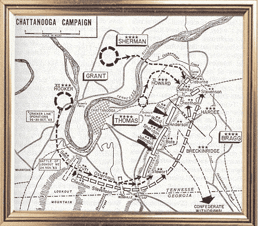 Following the events at Chickamauga, Braxton Bragg’s Confederate forces returned to the Chattanooga area and took up positions in the hills south of town. From the heights of Missionary Ridge and Lookout Mountain, the Southern forces could command access on the roadways and the Tennessee River. With supplies cut off, it appeared that Union forces might face the possibility of starvation.